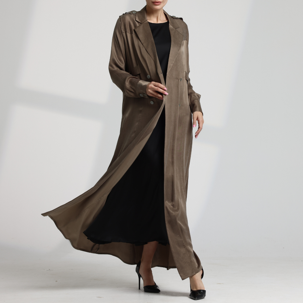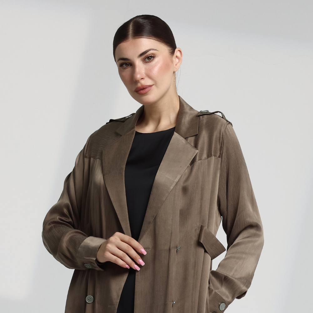 عباية أنيقة من تصنيف سقنتشر بتصميم كلاسيكي فاخر يعكس البساطة والفخامة في آن واحد. مصنوعة من قماش كريب مغسول ياباني عالي الجودة، يتميز بملمس ناعم وانسيابية مريحة، مع مظهر متماسك يحافظ على شكله الأنيق طوال اليوم. مثالية للإطلالات الرسمية واليومية.