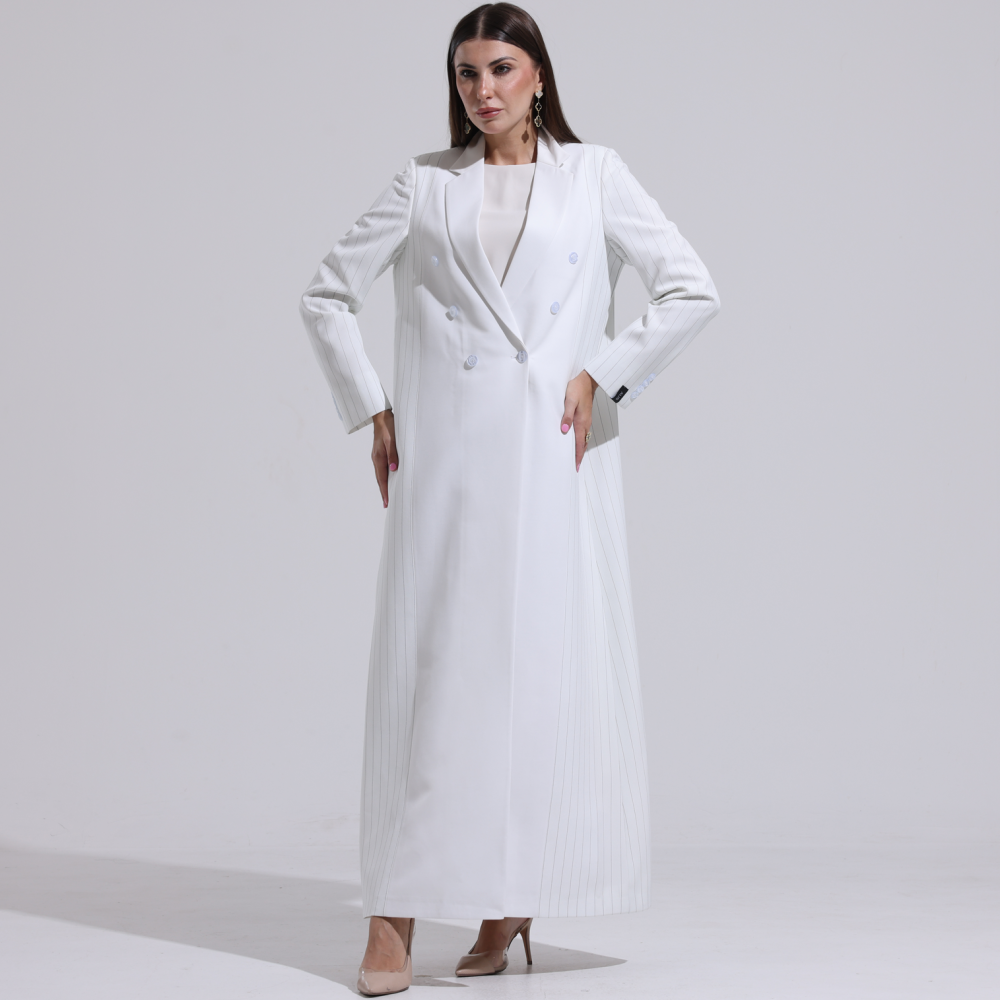 عباية Signature Pinstripe من مجموعة Signature Line بتصميم مستوحى من البليزر الكلاسيكي المخطط.